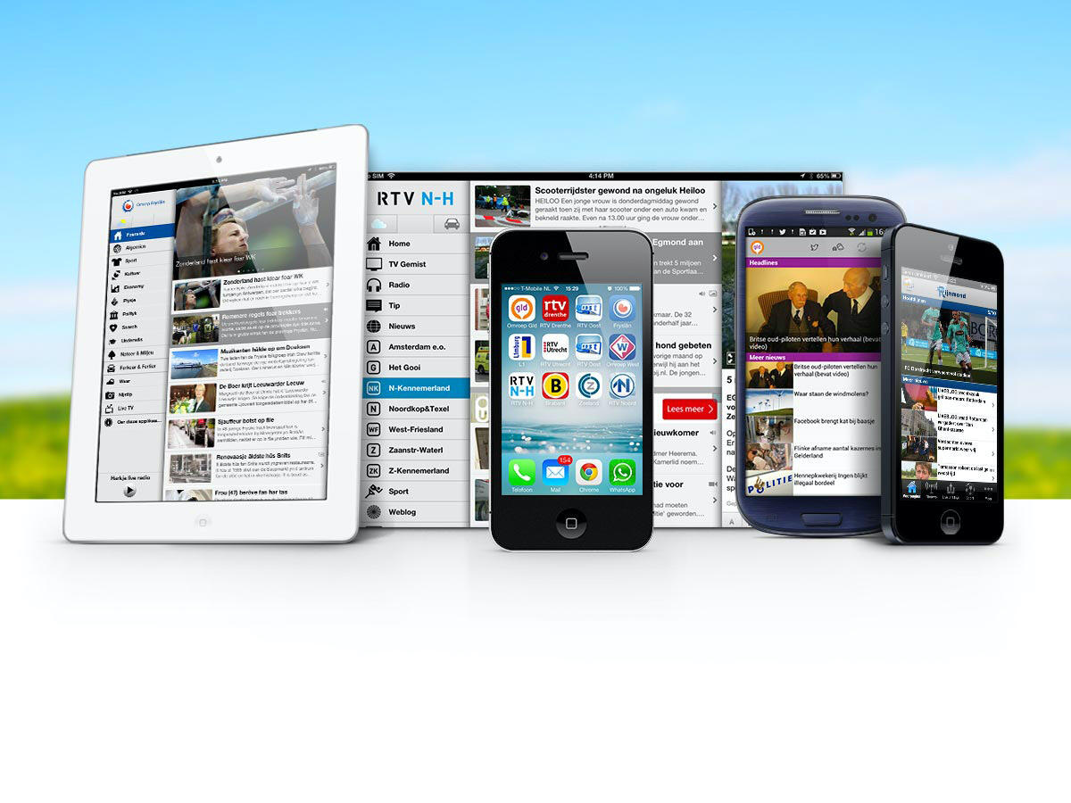 There are, in addition to the news pages, features available such as a radio-player, missed broadcasts, live tv, Teletext, weather and traffic pages.Our work included an app for each broadcaster: RTV Noord, RTV Oost, L1, West, RTV Utrecht, Brabant, RTV Drenthe, Zeeland, Gelderland, RTV Rijnmond, RTV Flevoland and RTV Noord-Holland.